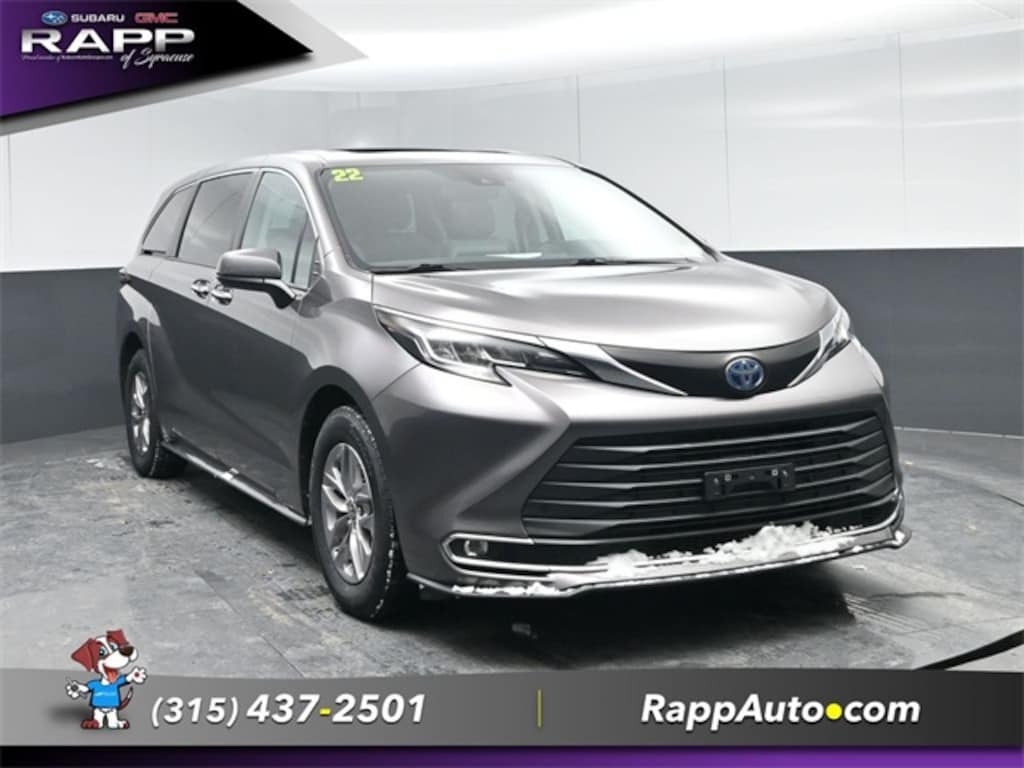 CLEAN CARFAX, NEW TIRES, Non-Smoker, New Brakes, Recent Oil Change, Dealer Detailed, Dealer Inspected, 3rd Row Seat, Backup Camera, Bluetooth, Hands-free, Cruise Control, Keyless Entry, Leather Seats, Power Locks, Power Windows, Steering Wheel Controls, Sunroof / Moonroof, View our entire inventory at https://www.billrappbuickgmc.com/, Extended Moonroof, Sienna XLE, 4D Passenger Van, 8 Speakers, Alloy wheels, Driver's Seat Mounted Armrest, Front fog lights, Fully automatic headlights, Lane Departure Warning System, Power Liftgate, Power Sunroof/Moonroof, Reclining 3rd row seat. Gray 2022 Toyota Sienna XLE FWD CVT 2.5L I4